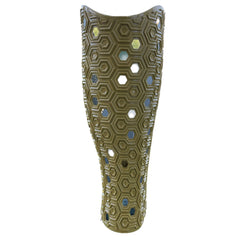 Amplified Prosthetic Covers are 3D Printed using medical grade nylon material. For reference, the Soloist curated style weighs approximately 8 ounces when sized for a 5'7" individual weighing 150 pounds.