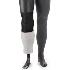 Apply your sleeve saver over the top of your prosthetic socket; tension band end down. It's important that all socket edges are covered before installing your prosthetic suspension sleeve. Once installed, pull your sleeve saver over your socket timelines and then apply your suspension sleeve over your sleeve saver. The sleeve saver's smooth nylon surface will reduce any friction or sharp prosthetic timelines from prematurely degrading your suspension sleeve.